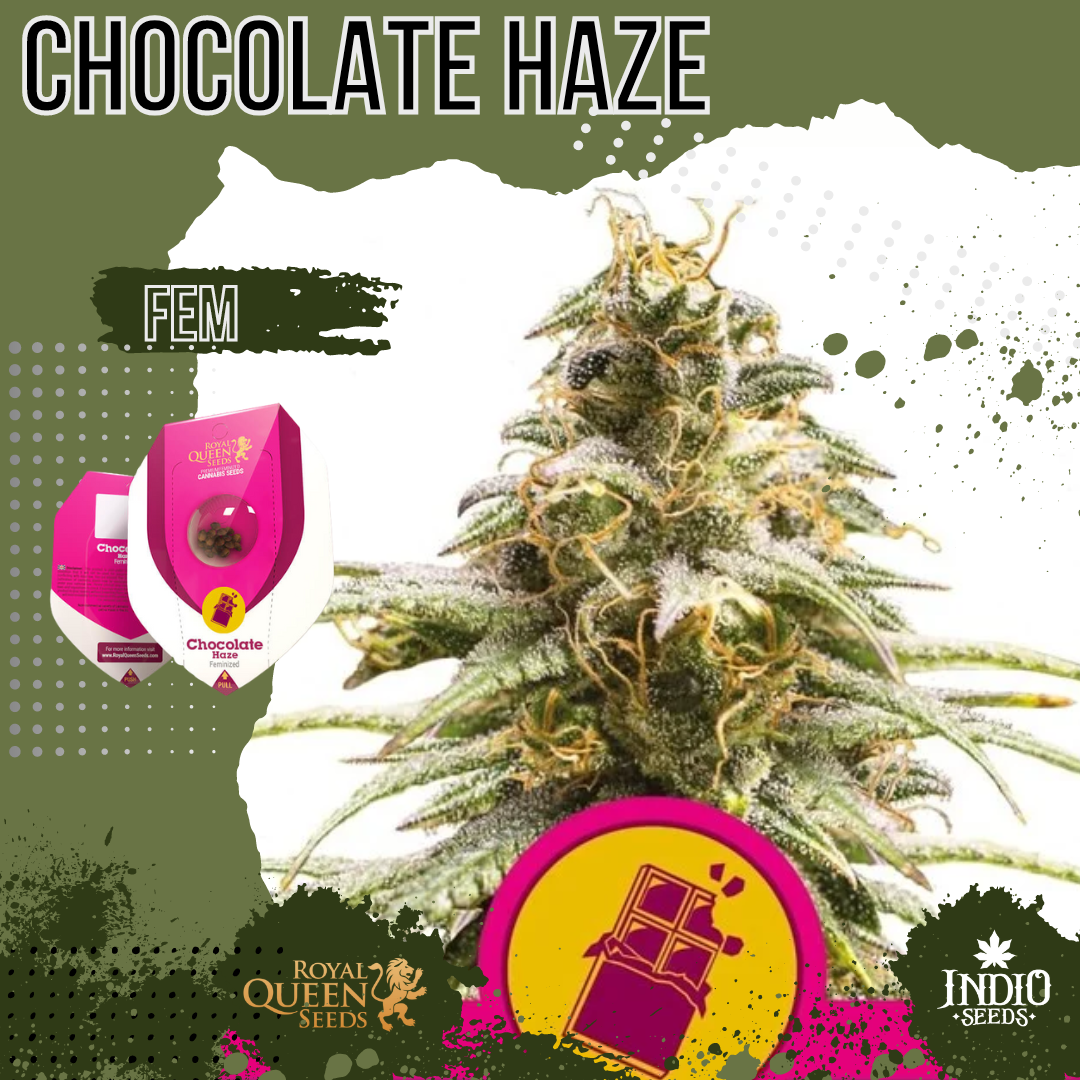 Los amantes del chocolate estarán encantados y sorprendidos cuando cultiven las semillas de marihuana de la variante Chocolate Haze. Como fenotipo del Chocolope, esta resistente cepa produce un subidón dulce y feliz dejando al fumador una sensación de ánimo, alegría y rubor.
